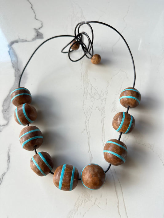 Rustic Coconut "Pião" Necklace - Leather Cord & Silver Accents