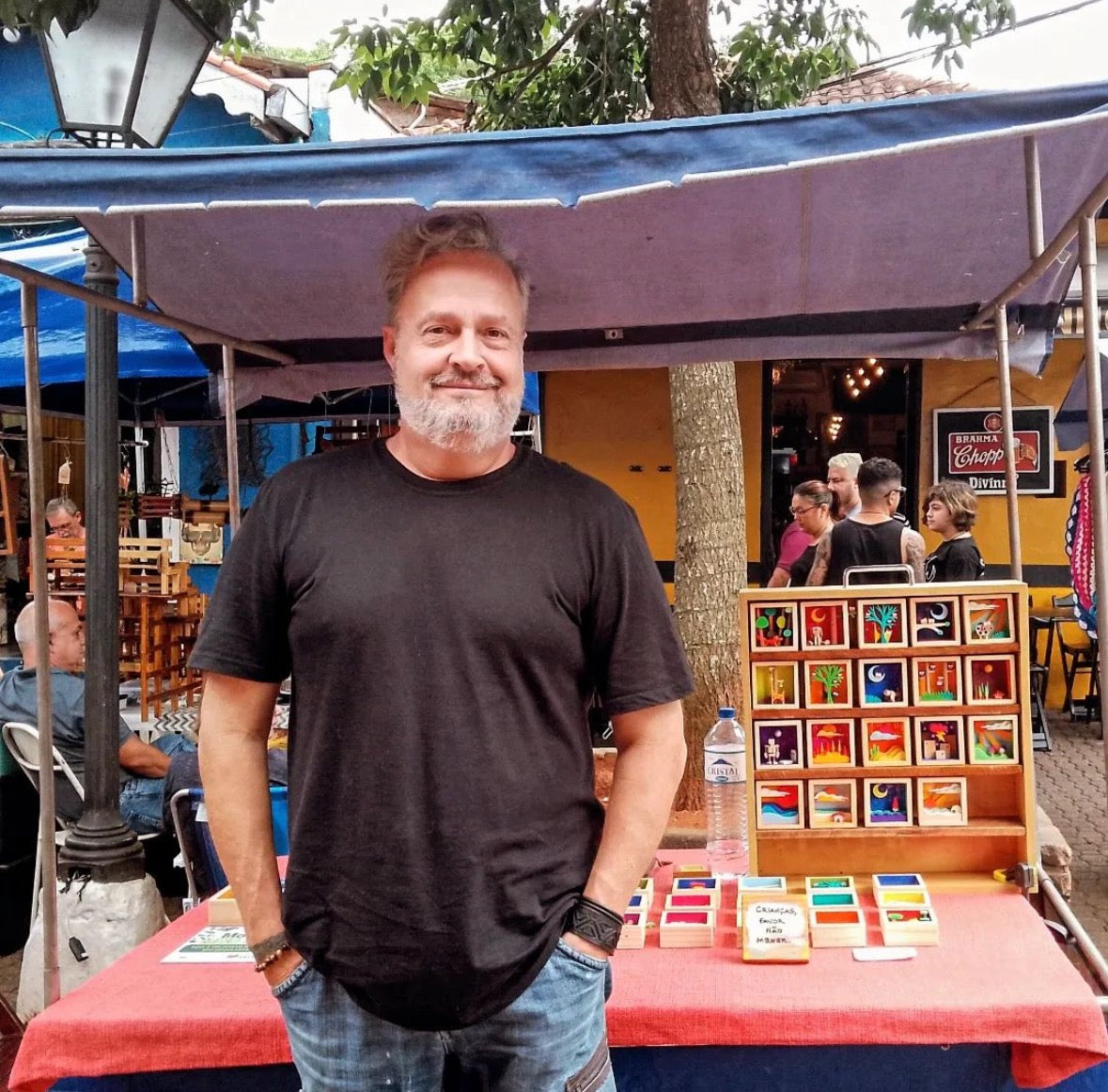 From Brazil | I discovered Klaus while strolling Vila Madalena, São Paulo. I was immediately drawn to his delightful tiny creations, bursting with color and charm. We purchased a few as gifts and I decided to reach out to him about bringing his work to Lola. After a year, he finally saw my message on Instagram 🤪 and we connected! He generously sent us more of his enchanting creations, along with a photo of himself and a little bio sharing his journey: