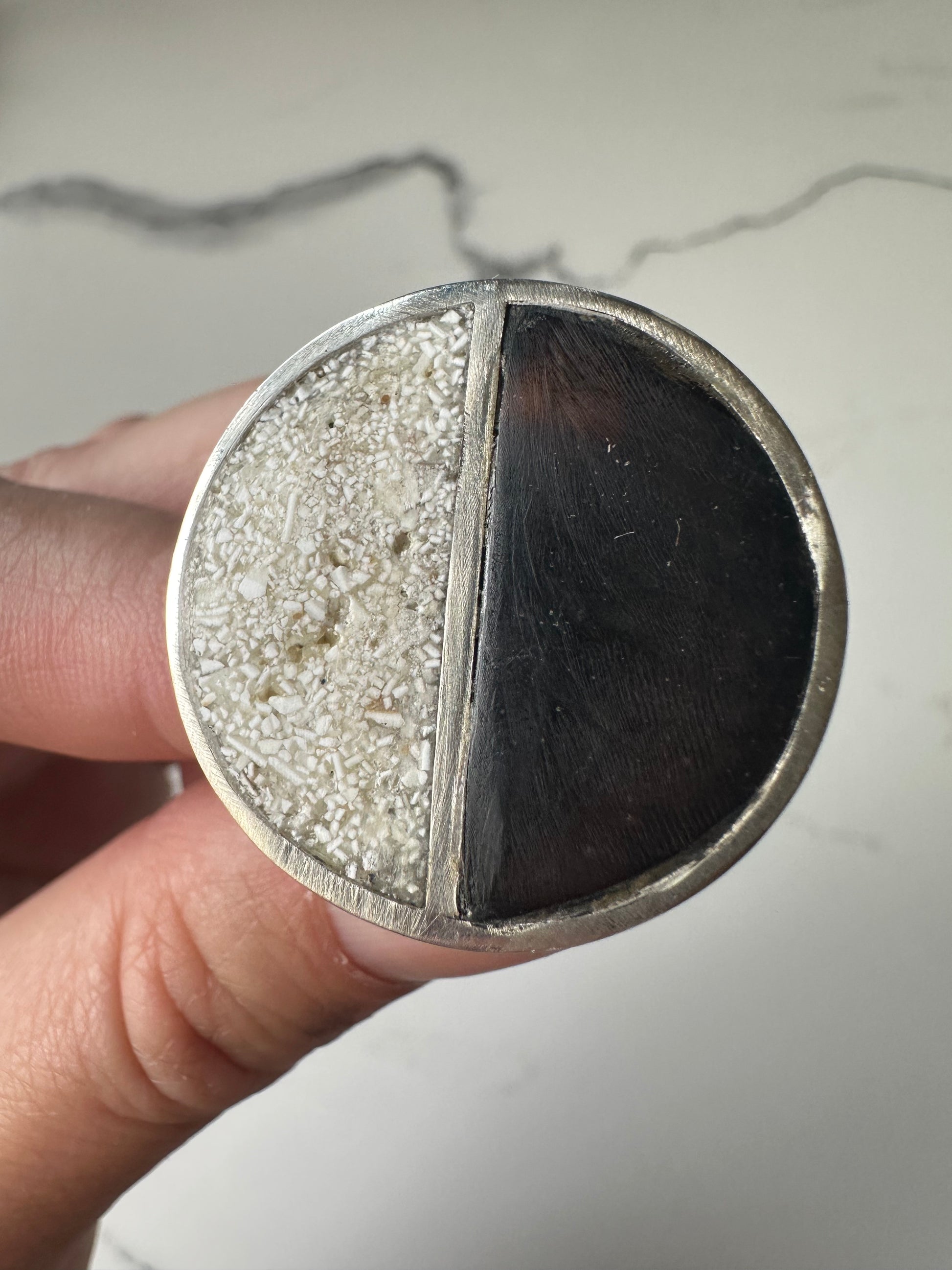Sustainable "Ribeirinho" Ring: Upcycled Coconut, Eggshell & Silver