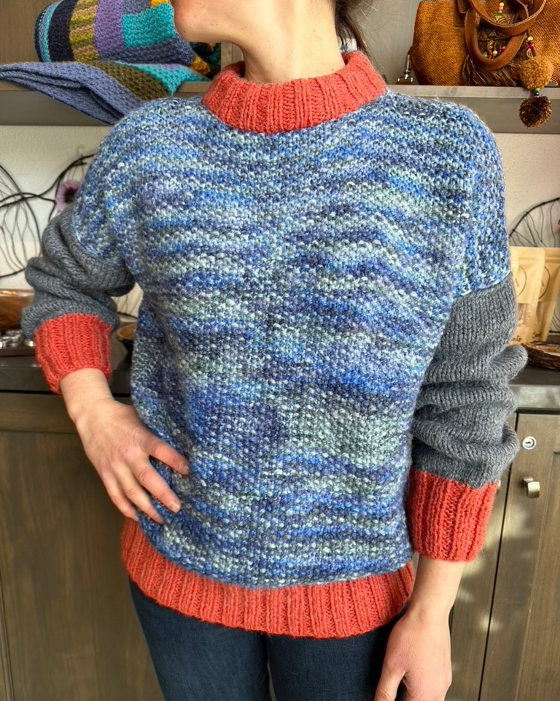 THE SOFTEST BABY ALPACA SWEATER, naranja y azules